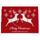 Desteis originelles Design der Silhouette von zwei Hirschen, die sich gegenüberstehen, zusammen mit einigen dekorativen Winterschneeflocken. Die Hintergrundfarbe ist rot. Es gibt auch zwei personalisierbare Textbereiche.