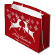 Weiße Hirschformen auf Rot mit Schneeflocken und T Große Geschenktüte