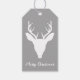 Weiße HirschkopfSilhouette auf grauem und benutzer Geschenkanhänger