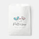 Weiße Hochzeitsfeier Gefallen Taschen mit Schmetterlingen. Romantisches Design für Braut und Bräutigam, frisch geerntet, verheiratetes Ehepaar oder Ehemann und Ehefrau. Fügen Sie Ihren eigenen Familiennamen und das Heiratsdatum hinzu. Elegante Papiertüten für Essen, Leckereien, Geschenke und vieles mehr. Auch gut für Brautparty oder Verlobung. Stilvolle Schrift Typografie Vorlage mit schöner Illustration. Bulk Pack.