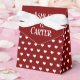 Weißes Herzmuster auf rotem Hintergrund mit Braut- und Bräutigamen. Die Hintergrundfarbe kann geändert werden. Namen können bearbeitet oder gelöscht werden.