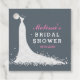 Elegante weiße Spitzen Brautkleid über grauem Hintergrund. Vorlage für anpassbare Brautpartys.