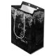 Weiße Lackoberfläche mit schwarzen Ledertexturen und Braut- und Bräutigamen. Namen können bearbeitet oder gelöscht werden.
