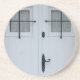 Weiße Holztür mit schwarzem Schmiedeeisenwerk Sandstein Untersetzer