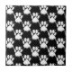 Ein weißer Hund druckt ein Muster mit einem Farbspritzer-Effekt auf einem schwarzen Hintergrund. Originelles Design.