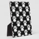 Ein weißer Hund druckt ein Muster mit einem Farbspritzer-Effekt auf einem schwarzen Hintergrund. Originelles Design.