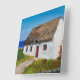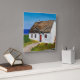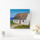 Weiße Hütte mit Blick auf das Meer. Ein altes Croft aus Stein mit Strohdach und einladender roter Tür. Perfektes Geschenk für eine Erwärmung. Das wäre ein schönes Geschenk, um jemandes Küche zu schenken. Das Original wurde mit Acrylstoffen in einem impressionistischen Stil gemalt. Von Charlotte Foster bei RivvyArts
