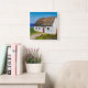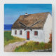 Weiße Hütte mit Blick aufs Meer Quadratische Wanduhr
