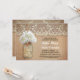Niedliche rustikale Verlobungsfeier mit Maurerkirsche mit weißer Hydrangea-Blüte. Perfekte Einladung für eine Country-Party mit Vintagen Spitzen und bedrückten Holzakzenten.