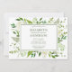 Diese Hochzeitsfeier lädt mit wunderschönen, gepflegten, mehrfarbigen, weißen Hydrangeas und atemberaubendem grünem Blattwerk und einem koordinierenden, grünen Streifen zurück zu jedem Garten, botanisch, floral, romantisch, draußen, rustikal, Vintage Thema. Es ist perfekt für Ihre Hochzeitsfeier nach Ihrer Hochzeit. Machen Sie es einfach zu Ihrem eigenen, indem Sie diese Vorlage personalisieren und Ihre Informationen eingeben. In Sekunden werden Sie Ihre einzigartige und atemberaubende Einladung sehen! Dieses Produkt passt sich perfekt den White Hydrangeas Floral Watercolor RSVP Karten an. Inklusive einer Einladung, damit Sie wissen, wie viele Gäste an Ihrer Hochzeitsfeier teilnehmen werden.