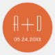 Weiße Initialen, schlichte orange Hochzeit Runder Aufkleber