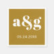 Weiße Initialen Typografie auf goldbraunen Hochzeitstorch-Serviette.