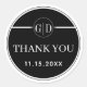 Feiern Sie Ihren besonderen Tag mit einer Touch von Eleganz mit den White Initials und Stripe Dankeschön Sie Hochzeit Classic Round Sticker. Dieses atemberaubende Design zeigt einen schlichten, weißen Streifen, der mit einem stilvollen runden Rahmen geschmückt ist und die Initialen des glücklichen Ehepaares schön auf einem eleganten schwarzen Hintergrund darstellt. Der herzliche Satz 'Danke' fügt eine Touch der Dankbarkeit hinzu, die es zum idealen Weg macht, Ihren Lieben Ihre Wertschätzung dafür zu bekunden, dass sie Teil Ihrer fröhlichen Feier sind.
