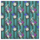 Dieses feine, lebendige, inspirierte Design der Alice im Wunderland hat das weiße Kaninchen, Uhren und Rose auf einem aquamarinen und dunkelgrünen vertikalen Streifen Hintergrund.