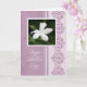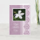 Karte der Mutter Tagesin Lila mit einer Fotografie einer weißen Blume vom Garten und von einem eleganten Entwurf.