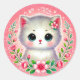 Weiße Kätzchen umgeben von rosa Blume Runder Aufkleber