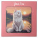 Weiße Katze am See Fliese