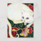 Liebe dieses Katzenkunstdrucks mit einer weißen Katze mit einem blauen und einem grünen Auge auf einem Vintagen Rindentuchkissen direkt von The Superior Cat, dem Quell für originelle Katzenkunst und lustige Katzenkätzchen-T - Shirt und Redewendungen über Kleidung und Geschenke für Katzenliebhaber!