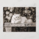 Dieses digitale Kunstwerk präsentiert eine Vintag inspiriert Szene einer weißen Katze in einem üppigen Blumengarten, der moderne Techniken mit nostalgischem Ambiente verbindet.