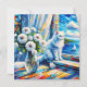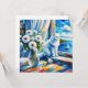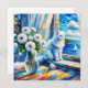 Kunstdarstellung einer weißen Katze, die aus dem Fenster auf einem Segelboot auf dem Ozean schaut. Vor der Katze ist eine Glasvase aus weißen Blume. Das wird in einem Ölgemälde gemacht. Hübsche Küstenkunst für Beach Zuhause oder um Ihnen das Meeresbrise Gefühl zu geben.