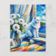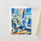 Weiße Katze im Fenster Blick auf den Ozean Postkarte