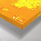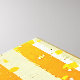 Eine weiße Katze, die auf gelben Aspen läuft, verlasst in einem einfachen und niedlichen Kinderbuchstil. Die Illustration ist vollfarbig mit Licht- und Schatteneffekten, Set vor weißem Hintergrund.