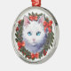 Weiße Katze in Weihnachtskraut Aquarellmalerei, Ornament Aus Metall