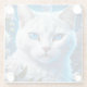 Weiße Katze mit hellblauen Augen, Bläschen Glasuntersetzer