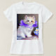 Weiße Katze mit Lila Blume Collar Painting T-Shirt
