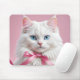 Weiße Katze mit rosa Band Mousepad