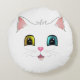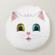 Weiße Katze mit zwei farbigen Augen Rundes Kissen