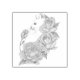 Ein Profil einer weißen Katze mit pfirsichfarbenen, rosa und lavenfarbenen Rose in schwarzer Umgebung