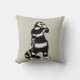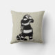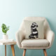 Creepisches Katzenkissen mit einer zeichnend Tinte, die ein seltsames, schwarz-weiß gestreiftes Kätzchen mit einem langen Hals mit einer Schädelmaske darstellt. Es scheint, dass einer seiner Handschuhe aus ist und seine Skeletthand aus dem Ärmel zeigt. Lässt mich fragen, ob es viel mehr ein gruseliges Wesen ist, als es vorgibt, auf Halloween zu sein.