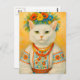 Weiße Katze Ukrainische Blume Kranz Postkarte für Postüberquerung