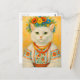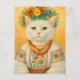 Weiße Katze Ukrainische Blume Wreath Postkarte