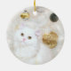 Weiße Katze und weiße Weihnachtsbaume Keramikornament