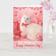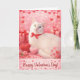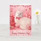 Dies ist ein Foto meiner weißen Katze mit einem blauen und einem grünen Auge. Sein Name ist Snow und er ist eine Schönheit! Dies ist eine süße rosa Valentinstag-Grußkarte mit rosa Herzen, Geschenken und Rosen.
