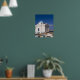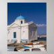 Weiße Kirche am Strand in der Nähe der Ägäis Poster