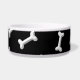 Weiße Knochen mit simuliertem 3D-Effekt auf schwarzem Hintergrund. Hundeschalen. Alles, was gesehen wird, ist bedruckt, es wird keine eigentliche Prägung für die Herstellung dieses Produktes verwendet. Geschenkidee für Hundefreunde.