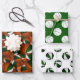 Diese spaßigen Packpapierblätter für Basketballspieler oder Fans sind mit drei individuellen, sich ergänzenden Mustern versehen — Blatt 1 zeigt ein 3D-Muster von Basketballbällen unterschiedlicher Größe, die aus zwei farbigen Panels bestehen - ein grün und ein weiß - und das Hintergrundbild abstrakt überdimensionierter Basketball-Bälle überragt - Blatt 2 hat einfache weiße Basketballformen auf anpassbarem Grün - Blatt 3 hat ein einfaches, gespiegeltes Muster aus grün und Weiß. - von katz_d_zynes
