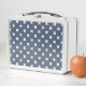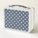 Weiße Kreuzstiche auf blau-grau Metall Brotdose