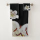 Weiße Lilie mit Lila Mitte auf schwarzem Hintergrund Badehandtuch Set