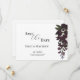 Feiern Sie Ihren besonderen Tag in zeitlosem Stil mit dieser eleganten Blumenhochzeit das Datum sparen. Dieses Design mit tiefen Pflaumenblüten vereint Romantik und Eleganz. Ideal für Gartenhochzeiten, Frühlings- und Sommerfeiern oder Paare, die eine raffinierte, aber warme Ästhetik suchen. Vollständig anpassbar mit eigenen Namen, Datum, Ort und Wortlaut, um Ihre Veranstaltung zu einem Anzug zu machen. Pair diese Einladung mit passenden RSVP-Karten, Einladungen und Dankeschön-Karten, um Ihre Hochzeitsbriefpapier-Suite zu vervollständigen.