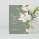 Weiße Lilien auf einem glänzenden grünen Hintergru Save The Date