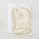 Eine Hochzeitskarte im RSVP-Stil mit inspiriertem Jugendstil-Design, mit weißen Lilien mit grünen Blätter, die einen Bio fließenden Rahmen auf beigem Hintergrund bilden.