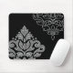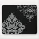 Rolle- und Blattdamast entwerfen ausführlich weißes Kontur, mit einem der grauen Fülle auf einem schwarzen Hintergrund in einem modernen Artkunstdruck.