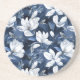 Weiße Magnolia-Blume, blauer Hintergrund Getränkeuntersetzer