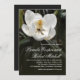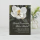 Ein anmutiges, modernes Hochzeitsdesign mit einer schönen weißen Magnolienblüte auf dunklem Hintergrund. Weißer Text in einem rechtsbegründeten Format verleiht zeitgenössischen Anklang. Diese Einladung ist eine schöne Wahl für Frühjahr- und Sommerhochzeiten sowie für Hochzeiten im Garten oder im Freien. Bearbeiten Sie den Beispieltext mit Ihren Hochzeitsdetails. Sie können die Formulierung ändern, um Ihren persönlichen Geschmack und Ihre Vorlieben Anzug.