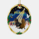 Zwei Dackeln beobachten drei weise Männer, wie sie sich in Richtung Bethlehem bewegen, als eine Taube von Friedenstauben im Sternenlicht.