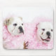 weißer Hintergrund, weiße männliche und weibliche Bullhunde, rosa Federboas, Landschaft | Max Oppenheim | AssetID: 107861740